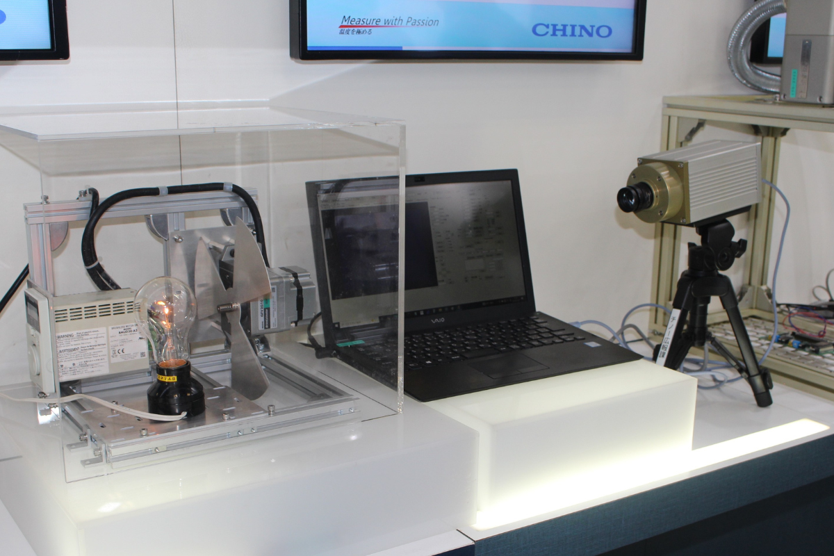 高速高機能熱画像計測装置(仮)は参考出品。最大500フレーム/秒の高速熱画像計測が可能で、炎やアーク放電など瞬間的に発生する高温現象を逃さず捉える。