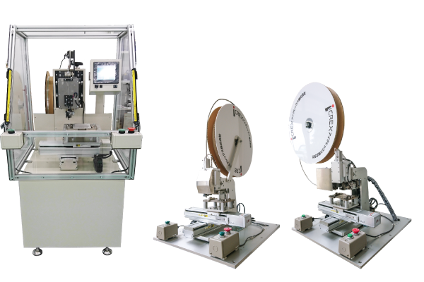 「プリフォーム連続ピン端子挿入機」には、標準機として「据置型」と「卓上型」を、「プリフォーム連続タブ端子挿入機」には、 標準機として「据置型」を用意しています。