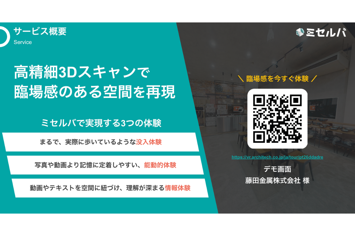 ArchiTech株式会社は「人々に愛される建築が持続的に生まれる社会を実現する」というビジョンのもと、施設のバーチャル化を通じて事業課題の解決を支援するバーチャル内覧サービス「ミセルバ」を提供しています。