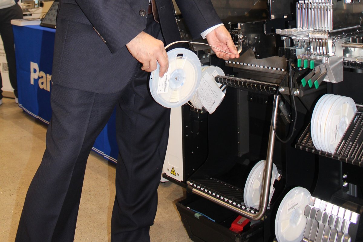 マウンターで最もヒューマンスキルを必要とするのは部品供給テープをつなぐ作業。パナソニックコネクトはスキルレス、吸着エラー防止を狙い、オートセッティングフィーダー(ASF)を開発した。
